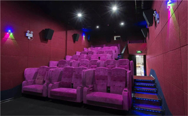 湖南郴州湘華電影城共采用三種吸音材料:環保槽木吸音板、生態木穿孔吸聲板、防火聚酯纖維吸音板。電影院收銀臺墻面與吊頂位置采用生態木穿孔吸音板、影城走廊兩側采用環保13/3槽孔吸音板。影視廳內墻面采用聚酯纖維吸音板。聚酯纖維吸音板共用800┫,環保槽孔吸音板210平方米,生態木穿孔吸聲板185平方米。