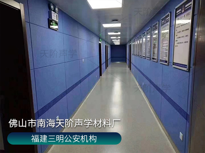 福建三明公安局項目,審訊室選用實用又實惠的聚酯纖維吸音板,空隙吸音降噪,有彈力能卸掉大部分撞擊力,做不燃處理,安全安心。