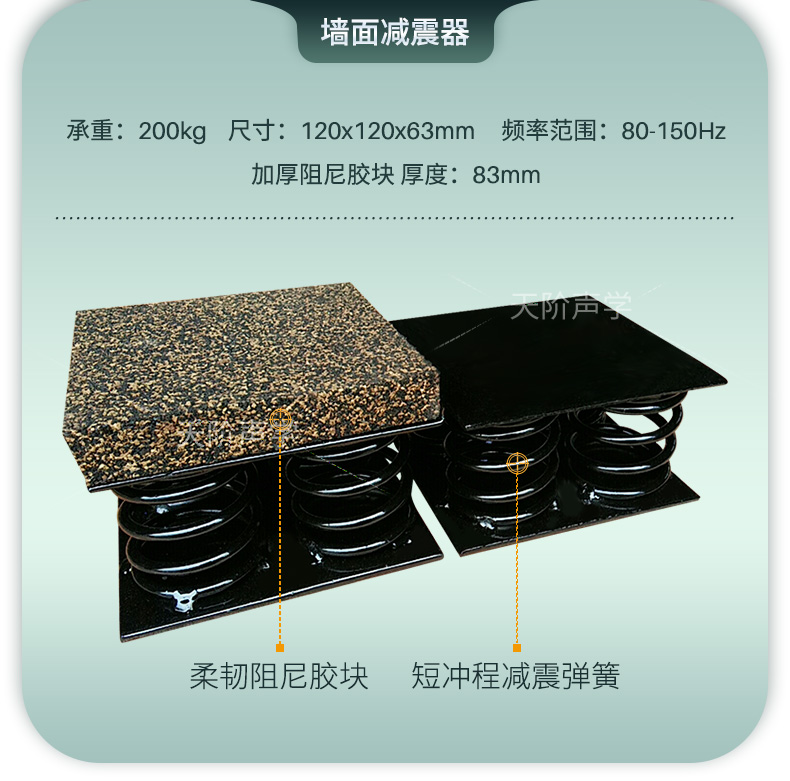 天花墻體隔音減震器是用于天花墻體隔音的必要構件。它特有的阻尼橡膠塊可以切斷聲橋的傳播,尤其對KTV、酒吧里有低音炮的地方,這是重要的隔音系統配件,不然,無論多少隔材料都無法將聲音阻隔于包廂房內。