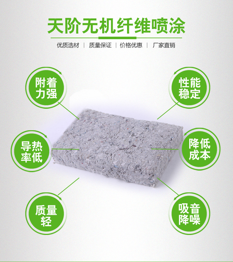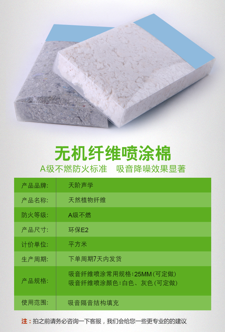 無機纖維噴涂棉 無機纖維隔熱保溫噴涂是以天然植物纖維為原料,經過阻燃及防蟲等化學處理而制成的一種符合環保要求的新型功能性吸聲植物纖維材料。Spray k-18系列產品作為全球首創的植物膠原聲學涂料,本公司生產的建筑聲學涂料,該產品綠色、環保,能解決原有保溫吸音材料無法解決的系列問題。