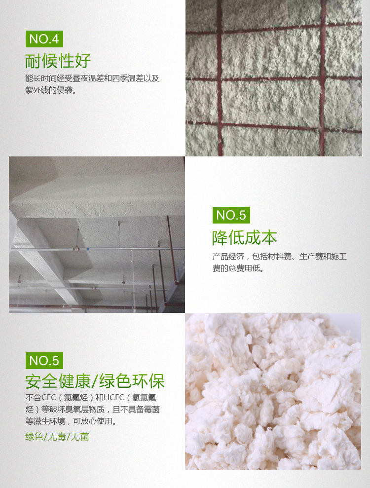 采用美國進口專用設備及專用膠水,可不規則地噴注在物體表面上。如:木材、金屬、混凝土及其它建筑材料,厚薄容重可按具體要求設計。噴涂后形成整體無縫的隔封面,無需裁隔外觀簡潔。噴涂緊附在各類物體上,長期使用不會松脫。