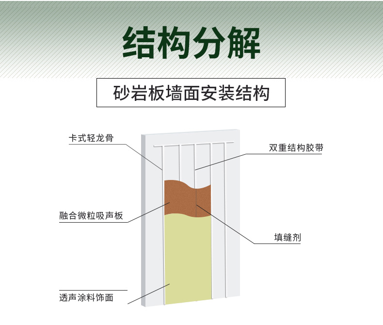 砂巖吸音板它的基材有兩種,一種是具有吸聲防火**的強化玻纖板為基材,這種基材為大家所熟知,也是很多設計師慣用的一種高端吸聲材料;另外一種基材是由特定直徑的輕質砂粒為原料,通過聚合技術使每個顆粒之間如焊接般聚合在一起,由于無機顆粒的表面不規則形狀或聚合空隙,微粒之間形成了大量不規則且互相連通的微觀孔隙結構。