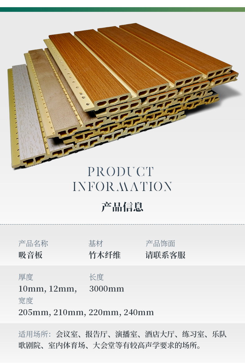 家裝場所:電視背景,床頭背景,大廳吸聲裝飾等。