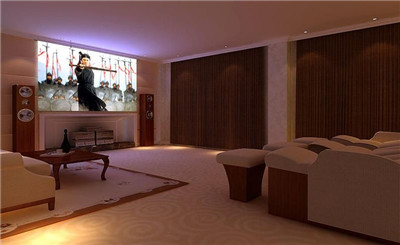 一般建議采用簡(jiǎn)潔處理,在處理好吊頂骨架的強(qiáng)度的情況下,特別是處理好音箱吊掛位的強(qiáng)度,并要作好記號(hào),頂部采用石膏板,四周采用石膏成型模塊,周遍采用輕巧的木制幾何結(jié)構(gòu)襯底就可以了。這樣可以配合暗藏的三基色彩燈,相成光折射組合。