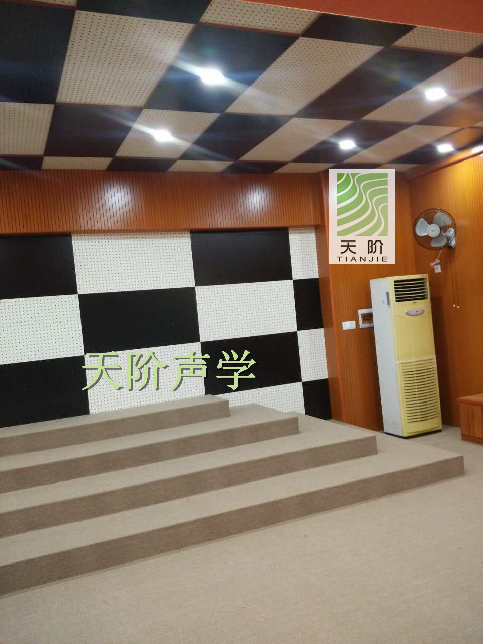 東莞市南城區小學多功能室采用了我們天階牌的槽木吸音板400方,孔木吸音板吸音板600。多功能室四周運用了紅櫻桃槽木吸音板作為墻面,同時還運用了兩種規格的黑白間隔的孔木吸音板。這樣搭配起來讓多功能室更加的好看。為了讓同學們有個更安靜更舒適的環境,學校還在天花板上裝了黑白間隔的孔木吸音板。這讓多功能室沒有了雜亂的回聲,也更生氣。