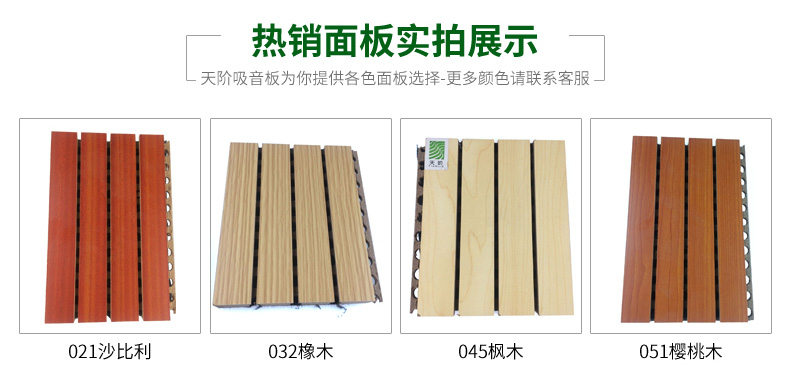 穿孔木質(zhì)吸音板基材和飾面選擇很多,詳情致電天階聲學(xué),可免費(fèi)索取拿樣板:18824825697