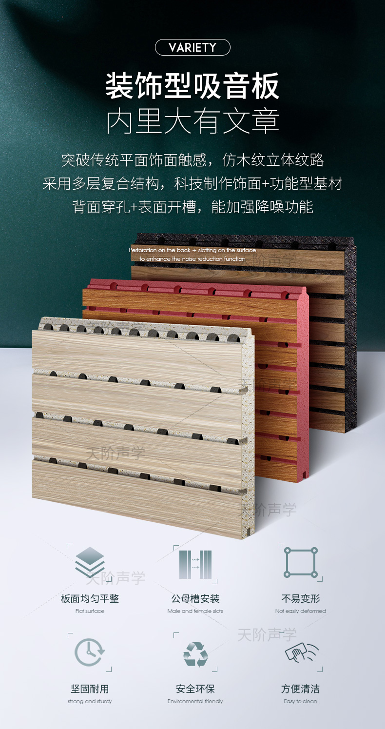 本公司專業生產木質吸音板,布藝吸聲板、吸音軟包、木絲吸音板、聚酯纖維吸聲板、隔音板、空間吸聲體、擴散體、隔音材料與聲學活動隔斷等多種聲學品類。