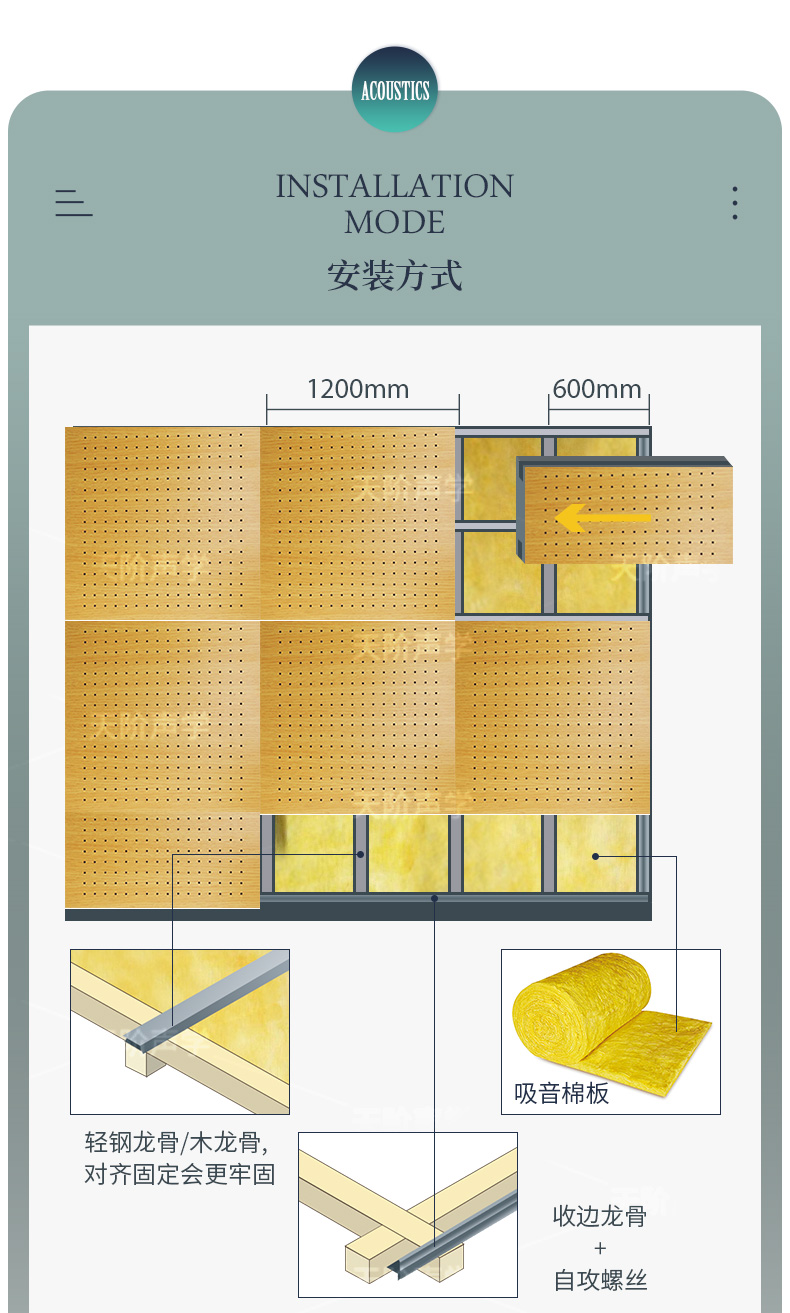 本公司專業(yè)生產(chǎn)木質(zhì)吸音板,布藝吸聲板、吸音軟包、木絲吸音板、聚酯纖維吸聲板、蜂窩陶瓷吸音板、隔音板、空間吸聲體、擴(kuò)散體、隔音材料、干掛板與聲學(xué)活動(dòng)隔斷、固定高隔間等多種聲學(xué)品類。