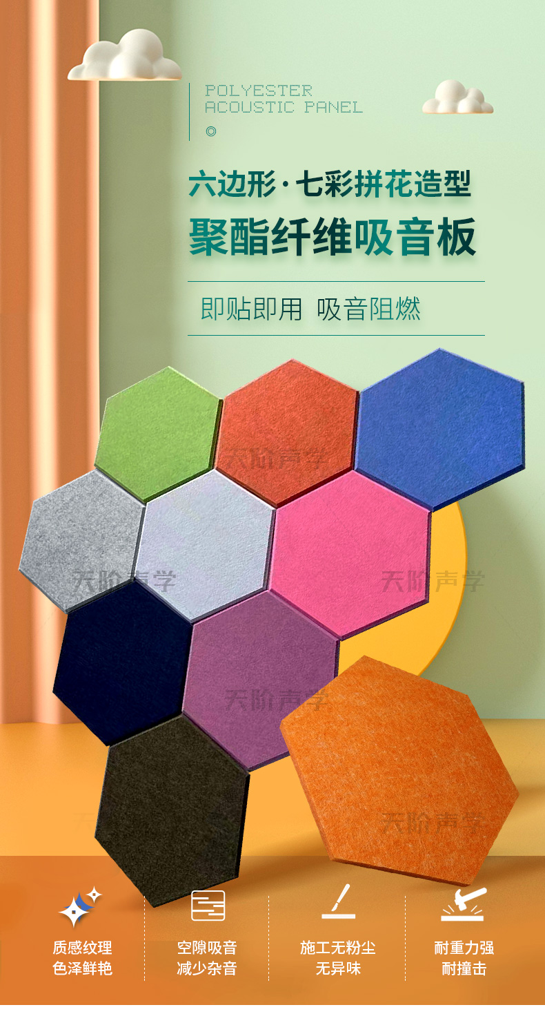 幼兒園六邊形聚酯纖維吸音板